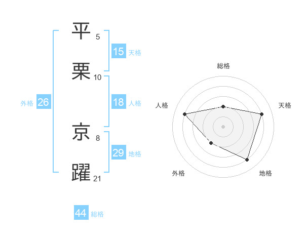 平栗 京躍さんの天格は15画の4点!