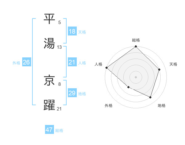平湯 京躍さんを姓名の画数から五運を鑑定