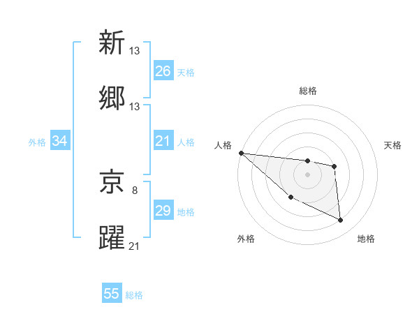 新郷 京躍さんを姓名の画数から五運を鑑定