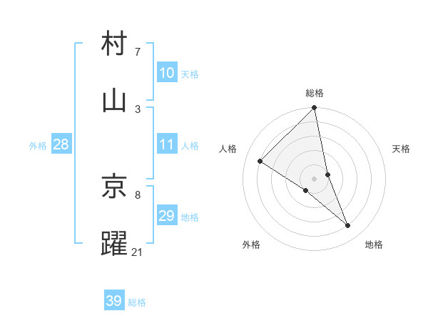 村山 京躍さんの総格は39画の5点!