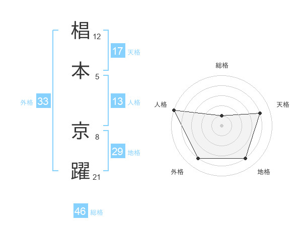 椙本 京躍さんの人格は13画の5点!