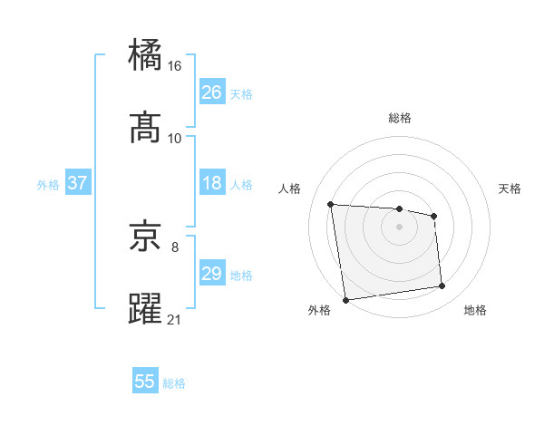 橘髙 京躍さんの総格は55画の1点!