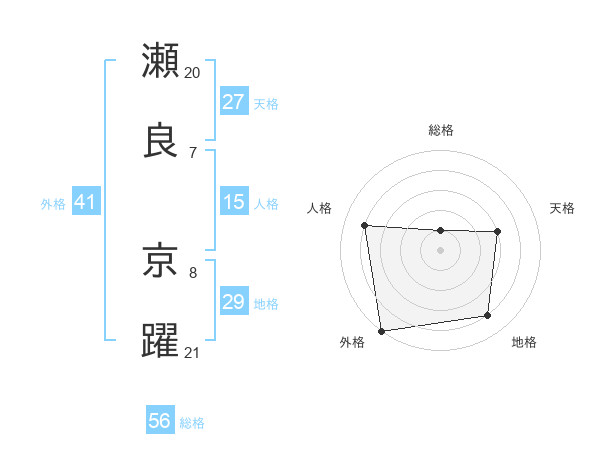 瀬良 京躍さんの外格は41画の5点!