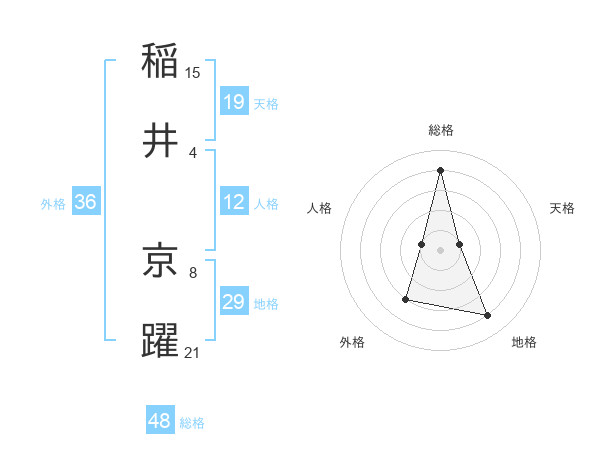 稲井 京躍さんの総格は48画の4点!