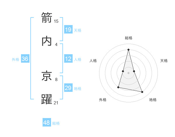 箭内 京躍さんの総格は48画の4点!