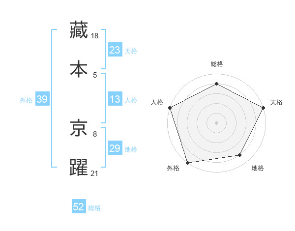 藏本 京躍さんの総格は52画の4点!