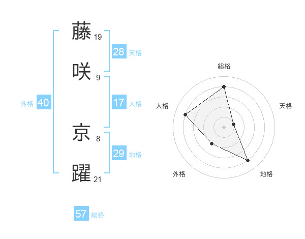 藤咲 京躍さんを姓名の画数から五運を鑑定