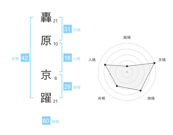 轟原 京躍さんを姓名の画数から五運を鑑定