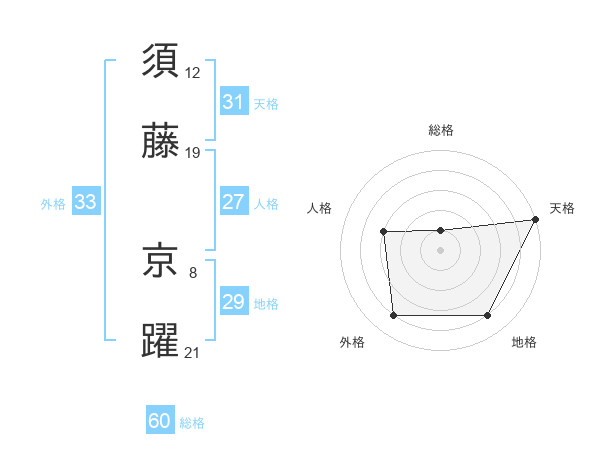 須藤 京躍さんを姓名の画数から五運を鑑定