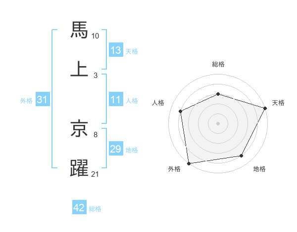馬上 京躍さんの天格は13画の5点!