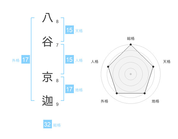 八谷 京迦さんの総格は32画の5点!