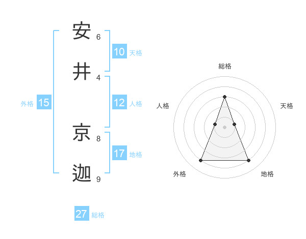安井 京迦さんの総格は27画の3点!