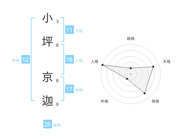小坪 京迦さんを姓名の画数から五運を鑑定