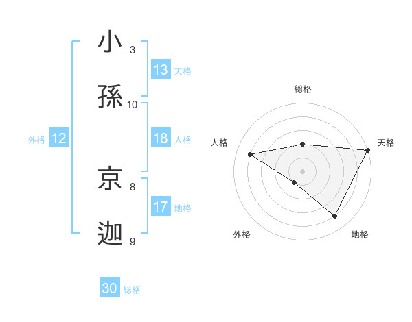 小孫 京迦さんを姓名の画数から五運を鑑定