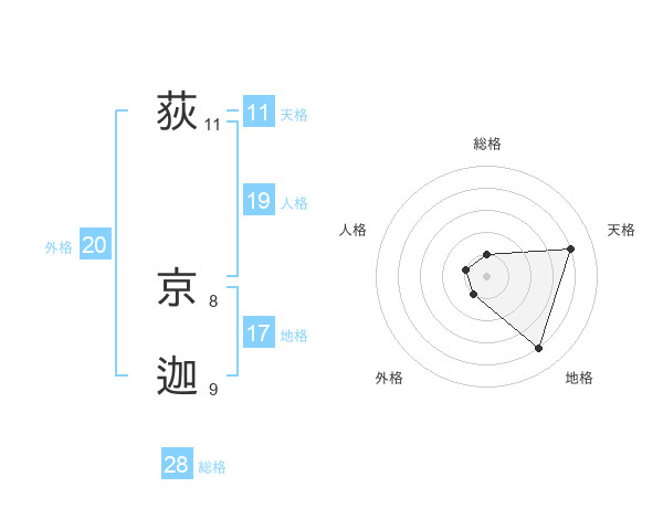 荻 京迦さんの総格は28画の1点!