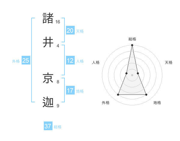 諸井 京迦さんの総格は37画の5点!