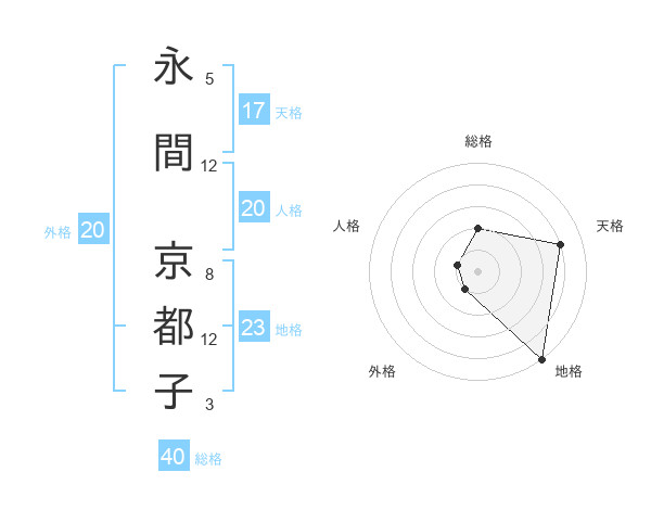永間 京都子さんの天格は17画の4点!