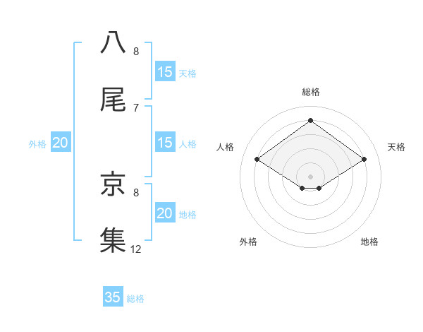 八尾 京集さんの天格は15画の4点!