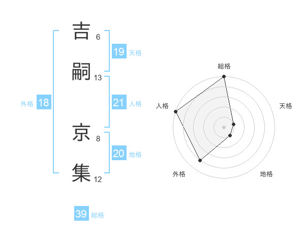 吉嗣 京集さんを姓名の画数から五運を鑑定