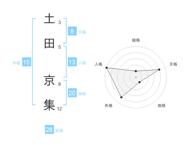 土田 京集さんの総格は28画の1点!