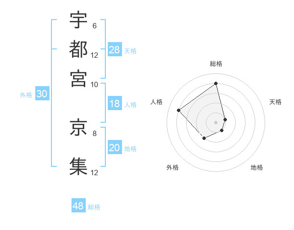 宇都宮 京集さんを姓名の画数から五運を鑑定