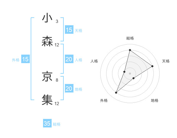 小森 京集さんの総格は35画の4点!