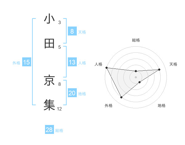 小田 京集さんの天格は8画の4点!