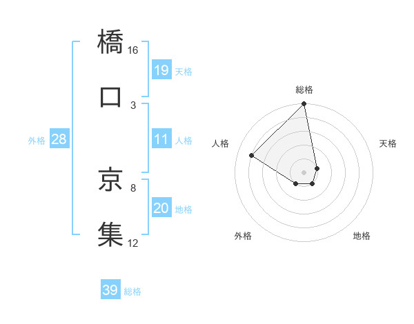 橋口 京集さんの総格は39画の5点!