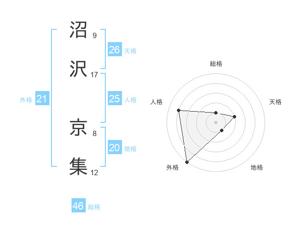 沼沢 京集さんを姓名の画数から五運を鑑定