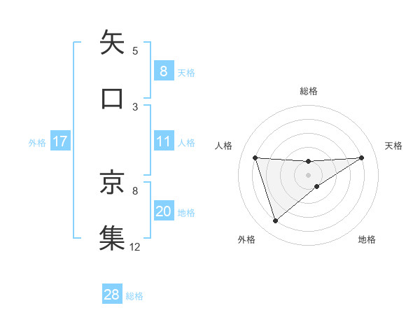 矢口 京集さんの天格は8画の4点!