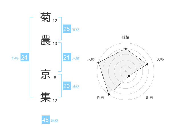 菊農 京集さんの総格は45画の4点!