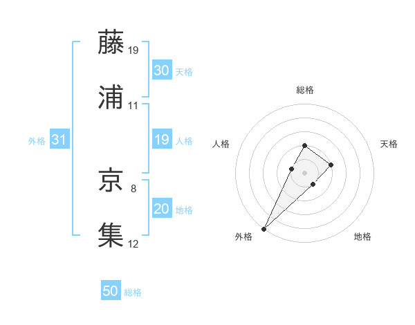 藤浦 京集さんを姓名の画数から五運を鑑定