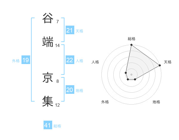谷端 京集さんの天格は21画の5点!