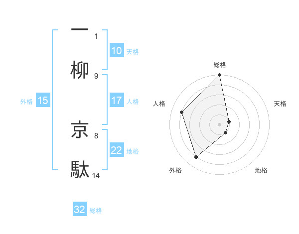 一柳 京駄さんを姓名の画数から五運を鑑定