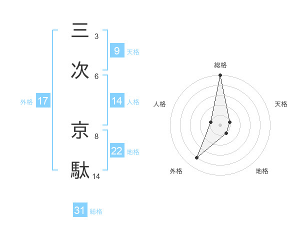 三次 京駄さんの総格は31画の5点!
