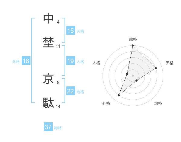 中埜 京駄さんの総格は37画の5点!
