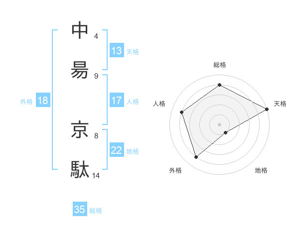 中昜 京駄さんを姓名の画数から五運を鑑定