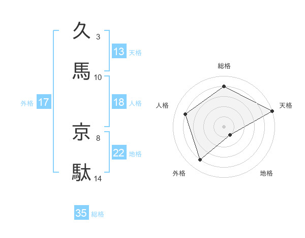 久馬 京駄さんの総格は35画の4点!