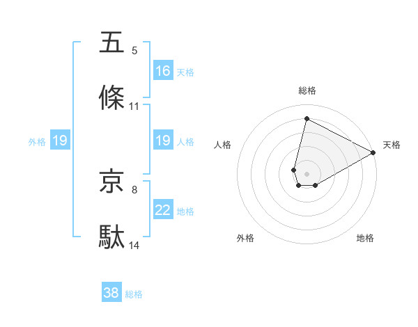 五條 京駄さんの総格は38画の4点!