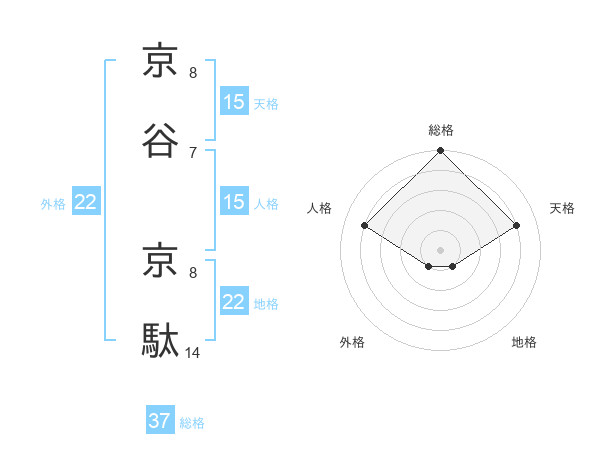 京谷 京駄さんの総格は37画の5点!