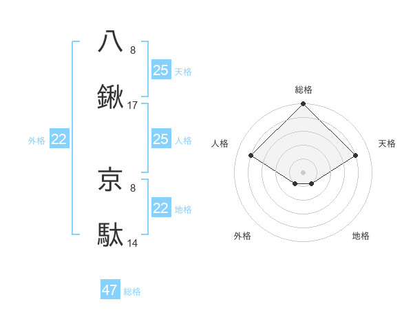 八鍬 京駄さんを姓名の画数から五運を鑑定