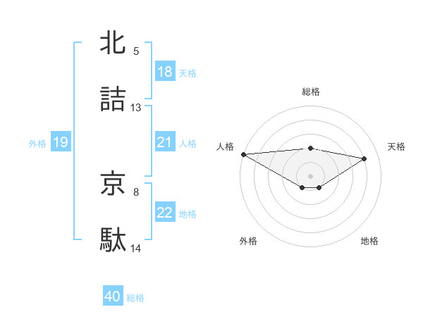 北詰 京駄さんの地格は22画の1点!