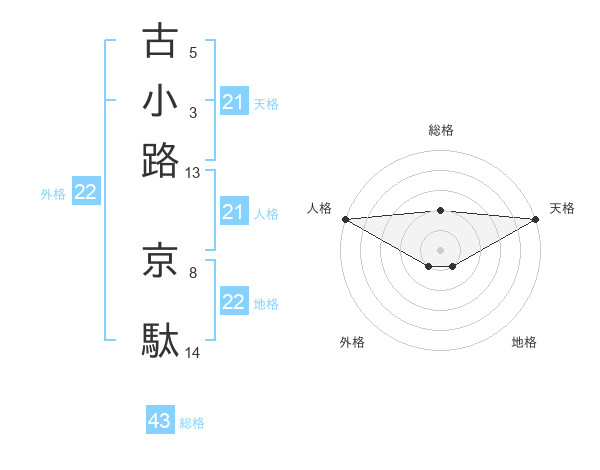 古小路 京駄さんの天格は21画の5点!