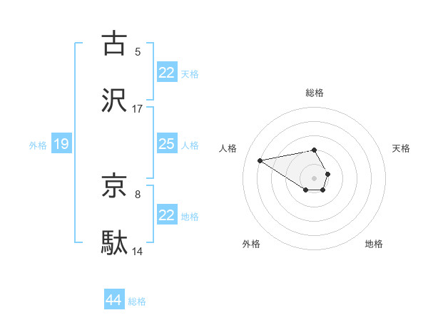 古沢 京駄さんの地格は22画の1点!