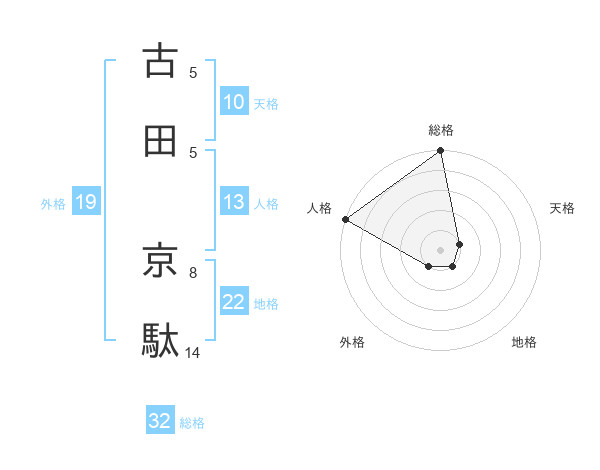 古田 京駄さんの総格は32画の5点!