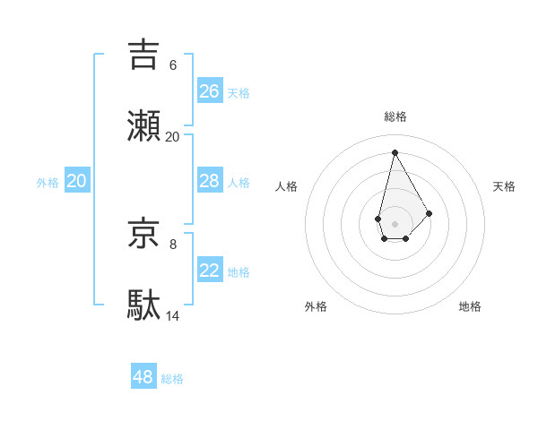 吉瀬 京駄さんを姓名の画数から五運を鑑定