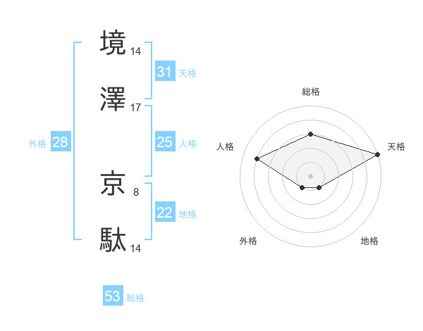 境澤 京駄さんの天格は31画の5点!
