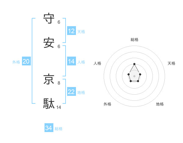 守安 京駄さんの総格は34画の2点!