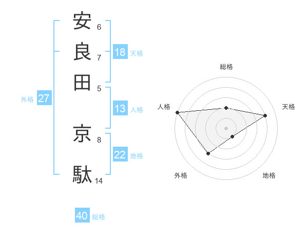 安良田 京駄さんを姓名の画数から五運を鑑定