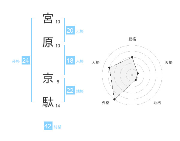 宮原 京駄さんの総格は42画の3点!